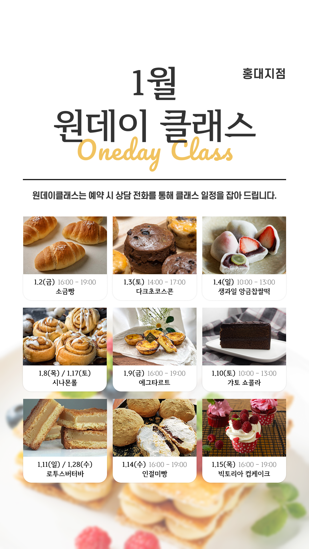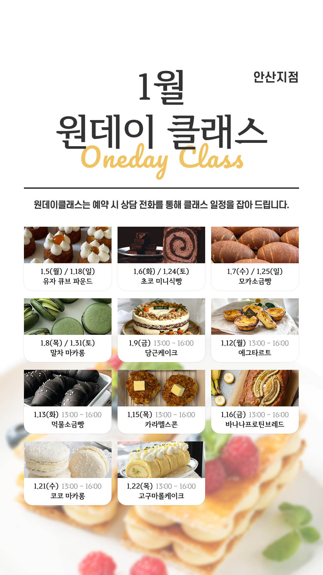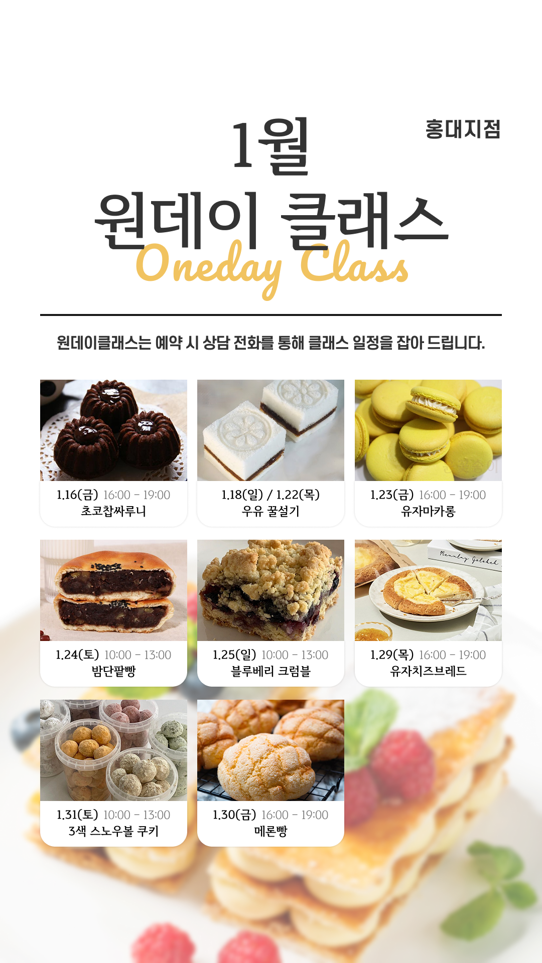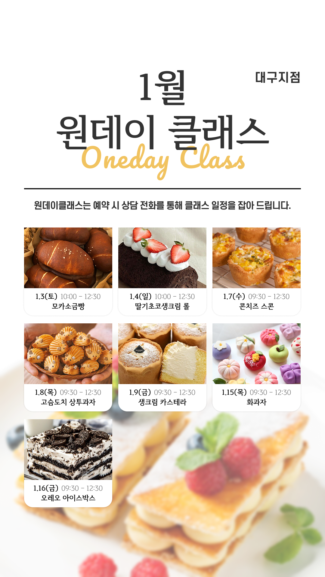 1월 지점별 원데이 클래스