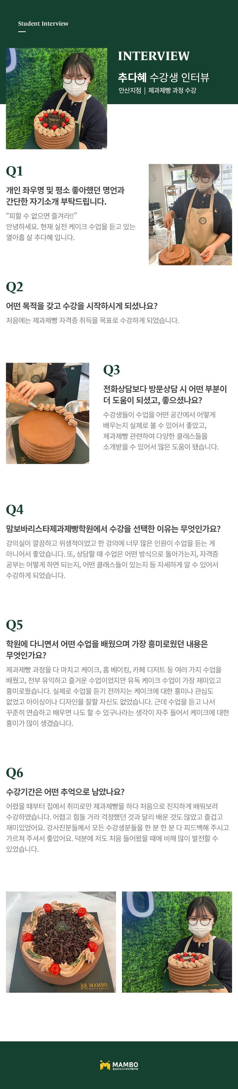 제1조 (개인정보 수집에 대한 동의)맘보교육그룹(이하 회사)는 이용자들이 회사의 개인정보취급방침 또는 이용약관의 내용에 대하여 “동의”버튼 또는 “취소”버튼을 클릭할 수 있는 절차를 마련하여, “동의”버튼을 클릭하면 개인정보 수집에 대해 동의한 것으로 봅니다. 제2조 (개인정보 수집항목) 온라인 문의를 통한 상담을 위해 처리하는 개인정보 항목은 아래와 같습니다. 수집항목 : 성명, 이메일, 전화번호 제3조 (개인정보의 이용목적) 회사는 이용자의 사전 동의 없이는 이용자의 개인 정보를 공개하지 않으며, 원활한 고객상담, 각종 서비스의 제공을 위해 아래와 같이 개인정보를 수집하고 있습니다. 모든 정보는 상기 목적에 필요한 용도 이외로는 사용되지 않으며 수집 정보의 범위나 사용 목적, 용도가 변경될 시에는 반드시 사전 동의를 구할 것입니다. - 성명 : 제품상담에 따른 본인 확인 - 이메일, 전화번호 : 제품상담 및 이벤트 관련 고지사항 전달, 새로운 서비스 및 신상품 정보 제공(DM, SMS, 이메일 등 이용) 이용자는 개인정보의 수집/이용에 대한 동의를 거부할 수 있습니다. 다만, 동의를 거부하는 경우 온라인 문의를 통한 상담은 불가하며 서비스 이용 및 혜택 제공에 제한을 받을 수 있습니다. 제4조 (개인정보의 보유 및 이용기간) 원칙적으로 개인정보 수집 및 이용목적이 달성된 후에는 해당 정보를 지체 없이 파기합니다. 그리고 상법, 전자상거래 등에서의 소비자보호에 관한 법률 등 관계법렵의 규정에 의하여 보존할 필요가 있는 경우 회사는 관계법령에서 정한 일정한 기간 동안 정보를 보관합니다. 이 경우 회사는 보관하는 정보를 그 보관의 목적으로만 이용하며 보존기간은 아래와 같습니다. - 계약 또는 청약철회 등에 관한 기록 : 5년(전자상거래등에서의 소비자보호에 관한 법률) - 소비자의 불만 또는 분쟁처리에 관한 기록 : 3년(전자상거래등에서의 소비자 보호에 관한 법률) - 시용정보의 수집/처리 및 이용 등에 관한 기록 : 3년(신용정보의 이용 및 보호에 관한 법률) - 회사는 귀중한 이용자의 개인정보를 안전하게 처리하며, 유출의 방지를 위하여 다음과 같은 방법을 통하여 개인정보를 파기합니다. - 종이에 출력된 개인정보는 분쇄기로 분쇄하거나 소각을 통하여 파기합니다. - 전자적 파일 형태로 저장된 개인정보는 기록을 재생할 수 없는 기술적 방법을 사용하여 삭제합니다.