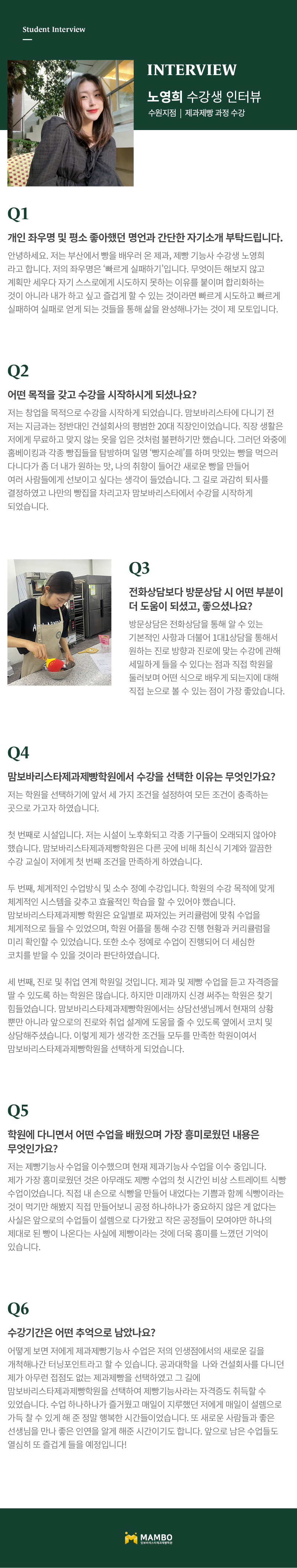 제1조 (개인정보 수집에 대한 동의)맘보교육그룹(이하 회사)는 이용자들이 회사의 개인정보취급방침 또는 이용약관의 내용에 대하여 “동의”버튼 또는 “취소”버튼을 클릭할 수 있는 절차를 마련하여, “동의”버튼을 클릭하면 개인정보 수집에 대해 동의한 것으로 봅니다. 제2조 (개인정보 수집항목) 온라인 문의를 통한 상담을 위해 처리하는 개인정보 항목은 아래와 같습니다. 수집항목 : 성명, 이메일, 전화번호 제3조 (개인정보의 이용목적) 회사는 이용자의 사전 동의 없이는 이용자의 개인 정보를 공개하지 않으며, 원활한 고객상담, 각종 서비스의 제공을 위해 아래와 같이 개인정보를 수집하고 있습니다. 모든 정보는 상기 목적에 필요한 용도 이외로는 사용되지 않으며 수집 정보의 범위나 사용 목적, 용도가 변경될 시에는 반드시 사전 동의를 구할 것입니다. - 성명 : 제품상담에 따른 본인 확인 - 이메일, 전화번호 : 제품상담 및 이벤트 관련 고지사항 전달, 새로운 서비스 및 신상품 정보 제공(DM, SMS, 이메일 등 이용) 이용자는 개인정보의 수집/이용에 대한 동의를 거부할 수 있습니다. 다만, 동의를 거부하는 경우 온라인 문의를 통한 상담은 불가하며 서비스 이용 및 혜택 제공에 제한을 받을 수 있습니다. 제4조 (개인정보의 보유 및 이용기간) 원칙적으로 개인정보 수집 및 이용목적이 달성된 후에는 해당 정보를 지체 없이 파기합니다. 그리고 상법, 전자상거래 등에서의 소비자보호에 관한 법률 등 관계법렵의 규정에 의하여 보존할 필요가 있는 경우 회사는 관계법령에서 정한 일정한 기간 동안 정보를 보관합니다. 이 경우 회사는 보관하는 정보를 그 보관의 목적으로만 이용하며 보존기간은 아래와 같습니다. - 계약 또는 청약철회 등에 관한 기록 : 5년(전자상거래등에서의 소비자보호에 관한 법률) - 소비자의 불만 또는 분쟁처리에 관한 기록 : 3년(전자상거래등에서의 소비자 보호에 관한 법률) - 시용정보의 수집/처리 및 이용 등에 관한 기록 : 3년(신용정보의 이용 및 보호에 관한 법률) - 회사는 귀중한 이용자의 개인정보를 안전하게 처리하며, 유출의 방지를 위하여 다음과 같은 방법을 통하여 개인정보를 파기합니다. - 종이에 출력된 개인정보는 분쇄기로 분쇄하거나 소각을 통하여 파기합니다. - 전자적 파일 형태로 저장된 개인정보는 기록을 재생할 수 없는 기술적 방법을 사용하여 삭제합니다.