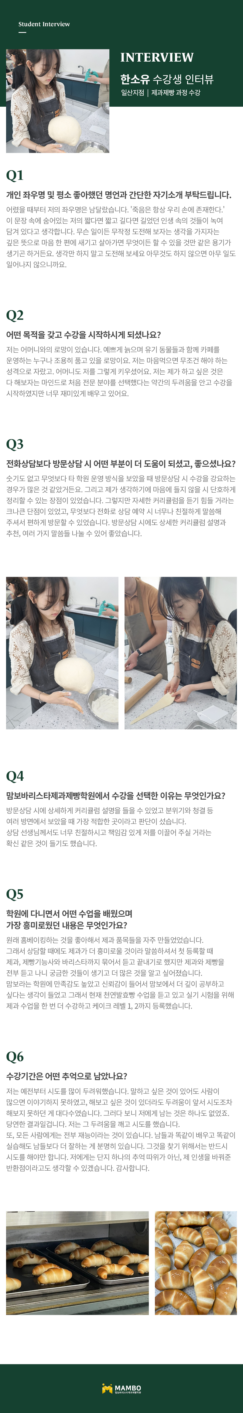 제1조 (개인정보 수집에 대한 동의)맘보교육그룹(이하 회사)는 이용자들이 회사의 개인정보취급방침 또는 이용약관의 내용에 대하여 “동의”버튼 또는 “취소”버튼을 클릭할 수 있는 절차를 마련하여, “동의”버튼을 클릭하면 개인정보 수집에 대해 동의한 것으로 봅니다. 제2조 (개인정보 수집항목) 온라인 문의를 통한 상담을 위해 처리하는 개인정보 항목은 아래와 같습니다. 수집항목 : 성명, 이메일, 전화번호 제3조 (개인정보의 이용목적) 회사는 이용자의 사전 동의 없이는 이용자의 개인 정보를 공개하지 않으며, 원활한 고객상담, 각종 서비스의 제공을 위해 아래와 같이 개인정보를 수집하고 있습니다. 모든 정보는 상기 목적에 필요한 용도 이외로는 사용되지 않으며 수집 정보의 범위나 사용 목적, 용도가 변경될 시에는 반드시 사전 동의를 구할 것입니다. - 성명 : 제품상담에 따른 본인 확인 - 이메일, 전화번호 : 제품상담 및 이벤트 관련 고지사항 전달, 새로운 서비스 및 신상품 정보 제공(DM, SMS, 이메일 등 이용) 이용자는 개인정보의 수집/이용에 대한 동의를 거부할 수 있습니다. 다만, 동의를 거부하는 경우 온라인 문의를 통한 상담은 불가하며 서비스 이용 및 혜택 제공에 제한을 받을 수 있습니다. 제4조 (개인정보의 보유 및 이용기간) 원칙적으로 개인정보 수집 및 이용목적이 달성된 후에는 해당 정보를 지체 없이 파기합니다. 그리고 상법, 전자상거래 등에서의 소비자보호에 관한 법률 등 관계법렵의 규정에 의하여 보존할 필요가 있는 경우 회사는 관계법령에서 정한 일정한 기간 동안 정보를 보관합니다. 이 경우 회사는 보관하는 정보를 그 보관의 목적으로만 이용하며 보존기간은 아래와 같습니다. - 계약 또는 청약철회 등에 관한 기록 : 5년(전자상거래등에서의 소비자보호에 관한 법률) - 소비자의 불만 또는 분쟁처리에 관한 기록 : 3년(전자상거래등에서의 소비자 보호에 관한 법률) - 시용정보의 수집/처리 및 이용 등에 관한 기록 : 3년(신용정보의 이용 및 보호에 관한 법률) - 회사는 귀중한 이용자의 개인정보를 안전하게 처리하며, 유출의 방지를 위하여 다음과 같은 방법을 통하여 개인정보를 파기합니다. - 종이에 출력된 개인정보는 분쇄기로 분쇄하거나 소각을 통하여 파기합니다. - 전자적 파일 형태로 저장된 개인정보는 기록을 재생할 수 없는 기술적 방법을 사용하여 삭제합니다.