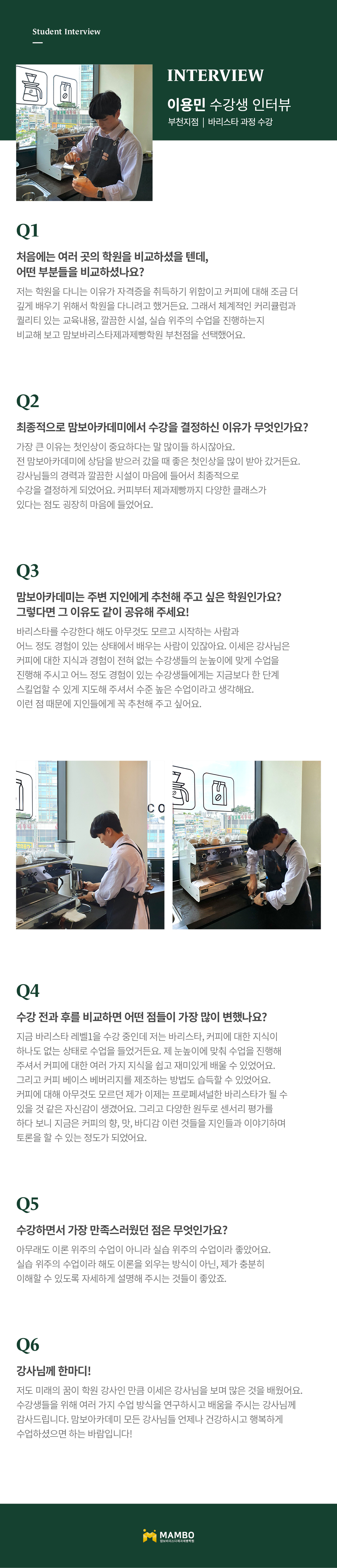 제1조 (개인정보 수집에 대한 동의)맘보교육그룹(이하 회사)는 이용자들이 회사의 개인정보취급방침 또는 이용약관의 내용에 대하여 “동의”버튼 또는 “취소”버튼을 클릭할 수 있는 절차를 마련하여, “동의”버튼을 클릭하면 개인정보 수집에 대해 동의한 것으로 봅니다. 제2조 (개인정보 수집항목) 온라인 문의를 통한 상담을 위해 처리하는 개인정보 항목은 아래와 같습니다. 수집항목 : 성명, 이메일, 전화번호 제3조 (개인정보의 이용목적) 회사는 이용자의 사전 동의 없이는 이용자의 개인 정보를 공개하지 않으며, 원활한 고객상담, 각종 서비스의 제공을 위해 아래와 같이 개인정보를 수집하고 있습니다. 모든 정보는 상기 목적에 필요한 용도 이외로는 사용되지 않으며 수집 정보의 범위나 사용 목적, 용도가 변경될 시에는 반드시 사전 동의를 구할 것입니다. - 성명 : 제품상담에 따른 본인 확인 - 이메일, 전화번호 : 제품상담 및 이벤트 관련 고지사항 전달, 새로운 서비스 및 신상품 정보 제공(DM, SMS, 이메일 등 이용) 이용자는 개인정보의 수집/이용에 대한 동의를 거부할 수 있습니다. 다만, 동의를 거부하는 경우 온라인 문의를 통한 상담은 불가하며 서비스 이용 및 혜택 제공에 제한을 받을 수 있습니다. 제4조 (개인정보의 보유 및 이용기간) 원칙적으로 개인정보 수집 및 이용목적이 달성된 후에는 해당 정보를 지체 없이 파기합니다. 그리고 상법, 전자상거래 등에서의 소비자보호에 관한 법률 등 관계법렵의 규정에 의하여 보존할 필요가 있는 경우 회사는 관계법령에서 정한 일정한 기간 동안 정보를 보관합니다. 이 경우 회사는 보관하는 정보를 그 보관의 목적으로만 이용하며 보존기간은 아래와 같습니다. - 계약 또는 청약철회 등에 관한 기록 : 5년(전자상거래등에서의 소비자보호에 관한 법률) - 소비자의 불만 또는 분쟁처리에 관한 기록 : 3년(전자상거래등에서의 소비자 보호에 관한 법률) - 시용정보의 수집/처리 및 이용 등에 관한 기록 : 3년(신용정보의 이용 및 보호에 관한 법률) - 회사는 귀중한 이용자의 개인정보를 안전하게 처리하며, 유출의 방지를 위하여 다음과 같은 방법을 통하여 개인정보를 파기합니다. - 종이에 출력된 개인정보는 분쇄기로 분쇄하거나 소각을 통하여 파기합니다. - 전자적 파일 형태로 저장된 개인정보는 기록을 재생할 수 없는 기술적 방법을 사용하여 삭제합니다.