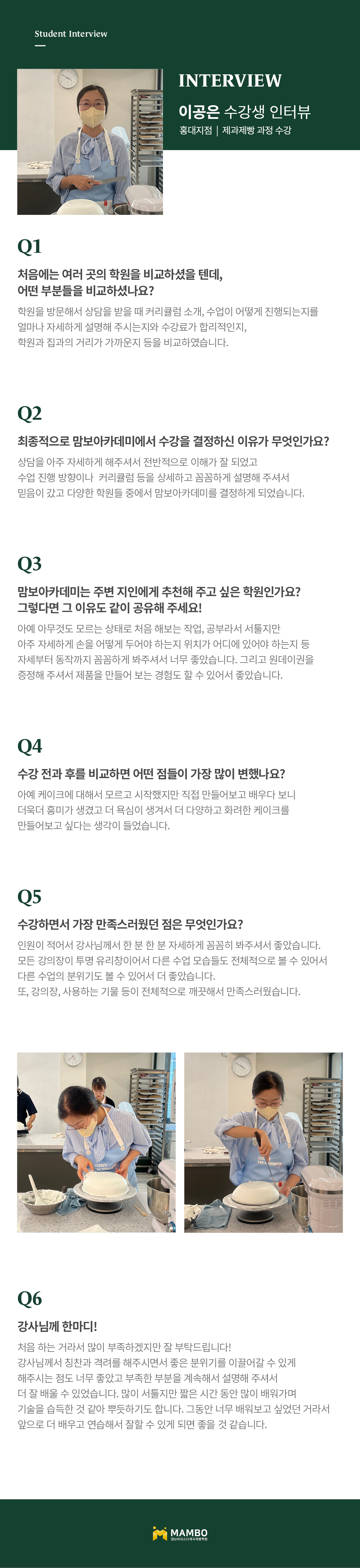 제1조 (개인정보 수집에 대한 동의)맘보교육그룹(이하 회사)는 이용자들이 회사의 개인정보취급방침 또는 이용약관의 내용에 대하여 “동의”버튼 또는 “취소”버튼을 클릭할 수 있는 절차를 마련하여, “동의”버튼을 클릭하면 개인정보 수집에 대해 동의한 것으로 봅니다. 제2조 (개인정보 수집항목) 온라인 문의를 통한 상담을 위해 처리하는 개인정보 항목은 아래와 같습니다. 수집항목 : 성명, 이메일, 전화번호 제3조 (개인정보의 이용목적) 회사는 이용자의 사전 동의 없이는 이용자의 개인 정보를 공개하지 않으며, 원활한 고객상담, 각종 서비스의 제공을 위해 아래와 같이 개인정보를 수집하고 있습니다. 모든 정보는 상기 목적에 필요한 용도 이외로는 사용되지 않으며 수집 정보의 범위나 사용 목적, 용도가 변경될 시에는 반드시 사전 동의를 구할 것입니다. - 성명 : 제품상담에 따른 본인 확인 - 이메일, 전화번호 : 제품상담 및 이벤트 관련 고지사항 전달, 새로운 서비스 및 신상품 정보 제공(DM, SMS, 이메일 등 이용) 이용자는 개인정보의 수집/이용에 대한 동의를 거부할 수 있습니다. 다만, 동의를 거부하는 경우 온라인 문의를 통한 상담은 불가하며 서비스 이용 및 혜택 제공에 제한을 받을 수 있습니다. 제4조 (개인정보의 보유 및 이용기간) 원칙적으로 개인정보 수집 및 이용목적이 달성된 후에는 해당 정보를 지체 없이 파기합니다. 그리고 상법, 전자상거래 등에서의 소비자보호에 관한 법률 등 관계법렵의 규정에 의하여 보존할 필요가 있는 경우 회사는 관계법령에서 정한 일정한 기간 동안 정보를 보관합니다. 이 경우 회사는 보관하는 정보를 그 보관의 목적으로만 이용하며 보존기간은 아래와 같습니다. - 계약 또는 청약철회 등에 관한 기록 : 5년(전자상거래등에서의 소비자보호에 관한 법률) - 소비자의 불만 또는 분쟁처리에 관한 기록 : 3년(전자상거래등에서의 소비자 보호에 관한 법률) - 시용정보의 수집/처리 및 이용 등에 관한 기록 : 3년(신용정보의 이용 및 보호에 관한 법률) - 회사는 귀중한 이용자의 개인정보를 안전하게 처리하며, 유출의 방지를 위하여 다음과 같은 방법을 통하여 개인정보를 파기합니다. - 종이에 출력된 개인정보는 분쇄기로 분쇄하거나 소각을 통하여 파기합니다. - 전자적 파일 형태로 저장된 개인정보는 기록을 재생할 수 없는 기술적 방법을 사용하여 삭제합니다.