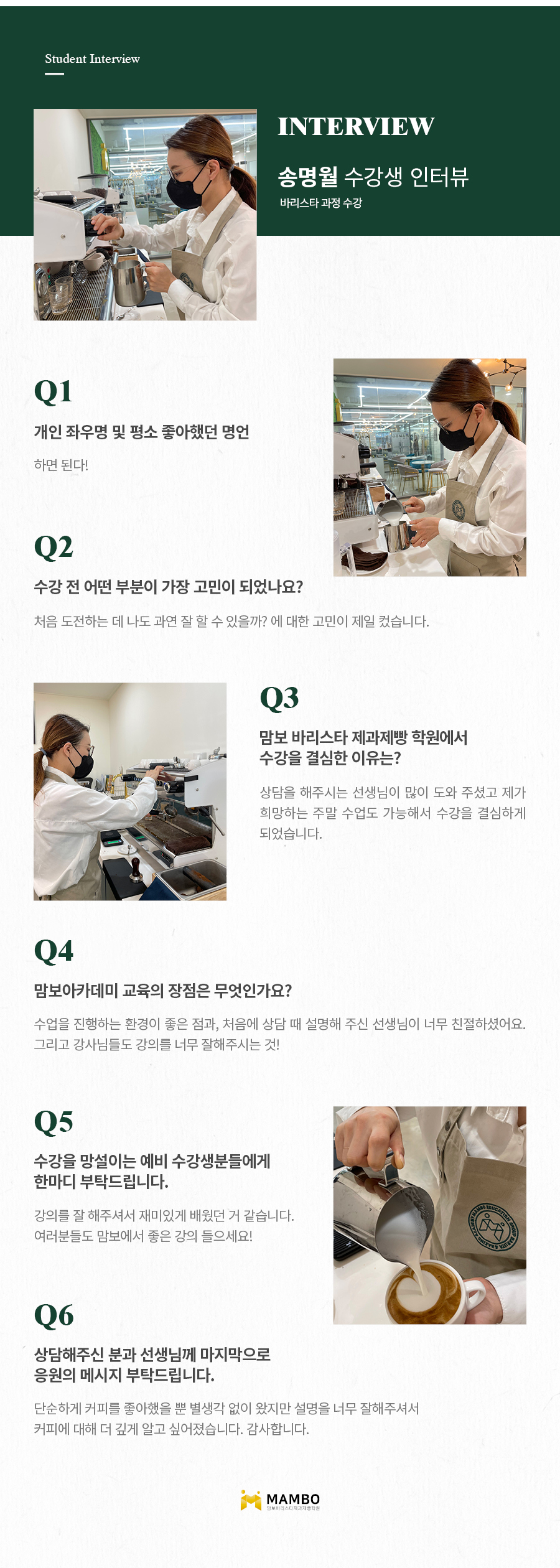 제1조 (개인정보 수집에 대한 동의)맘보교육그룹(이하 회사)는 이용자들이 회사의 개인정보취급방침 또는 이용약관의 내용에 대하여 “동의”버튼 또는 “취소”버튼을 클릭할 수 있는 절차를 마련하여, “동의”버튼을 클릭하면 개인정보 수집에 대해 동의한 것으로 봅니다. 제2조 (개인정보 수집항목) 온라인 문의를 통한 상담을 위해 처리하는 개인정보 항목은 아래와 같습니다. 수집항목 : 성명, 이메일, 전화번호 제3조 (개인정보의 이용목적) 회사는 이용자의 사전 동의 없이는 이용자의 개인 정보를 공개하지 않으며, 원활한 고객상담, 각종 서비스의 제공을 위해 아래와 같이 개인정보를 수집하고 있습니다. 모든 정보는 상기 목적에 필요한 용도 이외로는 사용되지 않으며 수집 정보의 범위나 사용 목적, 용도가 변경될 시에는 반드시 사전 동의를 구할 것입니다. - 성명 : 제품상담에 따른 본인 확인 - 이메일, 전화번호 : 제품상담 및 이벤트 관련 고지사항 전달, 새로운 서비스 및 신상품 정보 제공(DM, SMS, 이메일 등 이용) 이용자는 개인정보의 수집/이용에 대한 동의를 거부할 수 있습니다. 다만, 동의를 거부하는 경우 온라인 문의를 통한 상담은 불가하며 서비스 이용 및 혜택 제공에 제한을 받을 수 있습니다. 제4조 (개인정보의 보유 및 이용기간) 원칙적으로 개인정보 수집 및 이용목적이 달성된 후에는 해당 정보를 지체 없이 파기합니다. 그리고 상법, 전자상거래 등에서의 소비자보호에 관한 법률 등 관계법렵의 규정에 의하여 보존할 필요가 있는 경우 회사는 관계법령에서 정한 일정한 기간 동안 정보를 보관합니다. 이 경우 회사는 보관하는 정보를 그 보관의 목적으로만 이용하며 보존기간은 아래와 같습니다. - 계약 또는 청약철회 등에 관한 기록 : 5년(전자상거래등에서의 소비자보호에 관한 법률) - 소비자의 불만 또는 분쟁처리에 관한 기록 : 3년(전자상거래등에서의 소비자 보호에 관한 법률) - 시용정보의 수집/처리 및 이용 등에 관한 기록 : 3년(신용정보의 이용 및 보호에 관한 법률) - 회사는 귀중한 이용자의 개인정보를 안전하게 처리하며, 유출의 방지를 위하여 다음과 같은 방법을 통하여 개인정보를 파기합니다. - 종이에 출력된 개인정보는 분쇄기로 분쇄하거나 소각을 통하여 파기합니다. - 전자적 파일 형태로 저장된 개인정보는 기록을 재생할 수 없는 기술적 방법을 사용하여 삭제합니다.