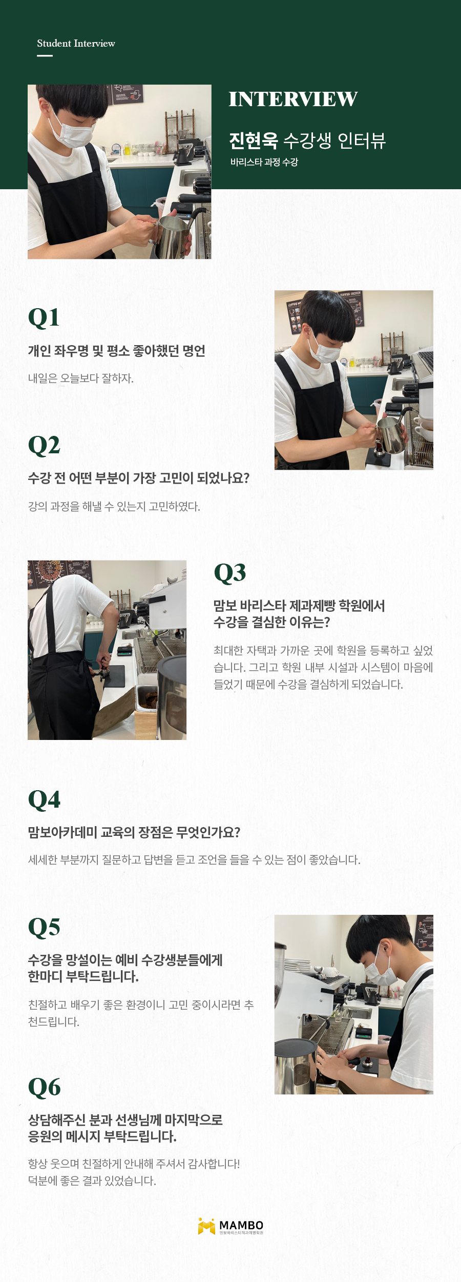 제1조 (개인정보 수집에 대한 동의)맘보교육그룹(이하 회사)는 이용자들이 회사의 개인정보취급방침 또는 이용약관의 내용에 대하여 “동의”버튼 또는 “취소”버튼을 클릭할 수 있는 절차를 마련하여, “동의”버튼을 클릭하면 개인정보 수집에 대해 동의한 것으로 봅니다. 제2조 (개인정보 수집항목) 온라인 문의를 통한 상담을 위해 처리하는 개인정보 항목은 아래와 같습니다. 수집항목 : 성명, 이메일, 전화번호 제3조 (개인정보의 이용목적) 회사는 이용자의 사전 동의 없이는 이용자의 개인 정보를 공개하지 않으며, 원활한 고객상담, 각종 서비스의 제공을 위해 아래와 같이 개인정보를 수집하고 있습니다. 모든 정보는 상기 목적에 필요한 용도 이외로는 사용되지 않으며 수집 정보의 범위나 사용 목적, 용도가 변경될 시에는 반드시 사전 동의를 구할 것입니다. - 성명 : 제품상담에 따른 본인 확인 - 이메일, 전화번호 : 제품상담 및 이벤트 관련 고지사항 전달, 새로운 서비스 및 신상품 정보 제공(DM, SMS, 이메일 등 이용) 이용자는 개인정보의 수집/이용에 대한 동의를 거부할 수 있습니다. 다만, 동의를 거부하는 경우 온라인 문의를 통한 상담은 불가하며 서비스 이용 및 혜택 제공에 제한을 받을 수 있습니다. 제4조 (개인정보의 보유 및 이용기간) 원칙적으로 개인정보 수집 및 이용목적이 달성된 후에는 해당 정보를 지체 없이 파기합니다. 그리고 상법, 전자상거래 등에서의 소비자보호에 관한 법률 등 관계법렵의 규정에 의하여 보존할 필요가 있는 경우 회사는 관계법령에서 정한 일정한 기간 동안 정보를 보관합니다. 이 경우 회사는 보관하는 정보를 그 보관의 목적으로만 이용하며 보존기간은 아래와 같습니다. - 계약 또는 청약철회 등에 관한 기록 : 5년(전자상거래등에서의 소비자보호에 관한 법률) - 소비자의 불만 또는 분쟁처리에 관한 기록 : 3년(전자상거래등에서의 소비자 보호에 관한 법률) - 시용정보의 수집/처리 및 이용 등에 관한 기록 : 3년(신용정보의 이용 및 보호에 관한 법률) - 회사는 귀중한 이용자의 개인정보를 안전하게 처리하며, 유출의 방지를 위하여 다음과 같은 방법을 통하여 개인정보를 파기합니다. - 종이에 출력된 개인정보는 분쇄기로 분쇄하거나 소각을 통하여 파기합니다. - 전자적 파일 형태로 저장된 개인정보는 기록을 재생할 수 없는 기술적 방법을 사용하여 삭제합니다.